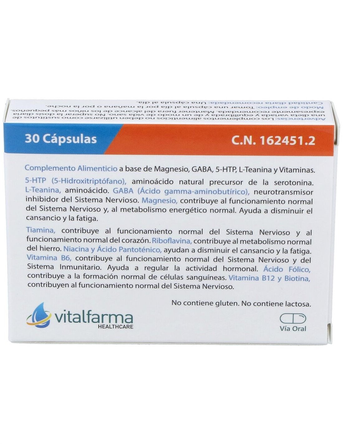 Complemento alimenticio con L-Triptófano, vitaminas, minerales y antioxidantes que contribuyen al funcionamiento normal del sistema nervioso e inmunitario, al rendimiento intelectual y la concentración. Favorece el sueño y la relajación y ayuda a disminuir el cansancio y la fatiga. Especialmente recomendado en aquellas personas con un ritmo de vida muy activo, intenso, con malos hábitos alimentarios que provocan continuas situaciones de: fatiga física e intelectual, dificultad de concentración, falta de energía, dolores musculares, nerviosismo, irritabilidad, ansiedad y dificultad de conciliar el sueño.