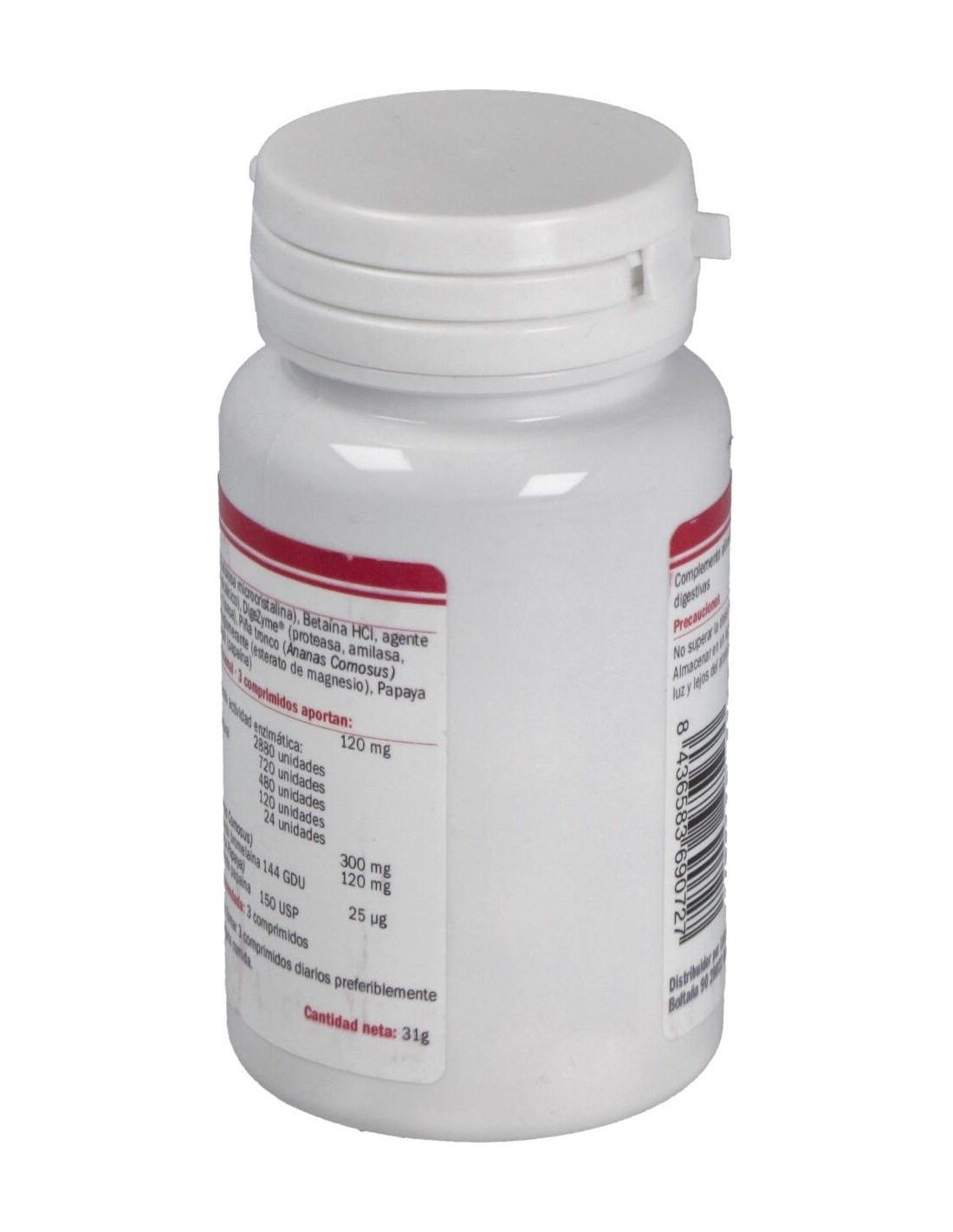 ComposiciónBetaina HCI, DigeZyme (Proteasa, Amilasa, Lactasa, Celulasa y Lipasa), Piña tronco (bromelaina), Papaya (papaina)..
