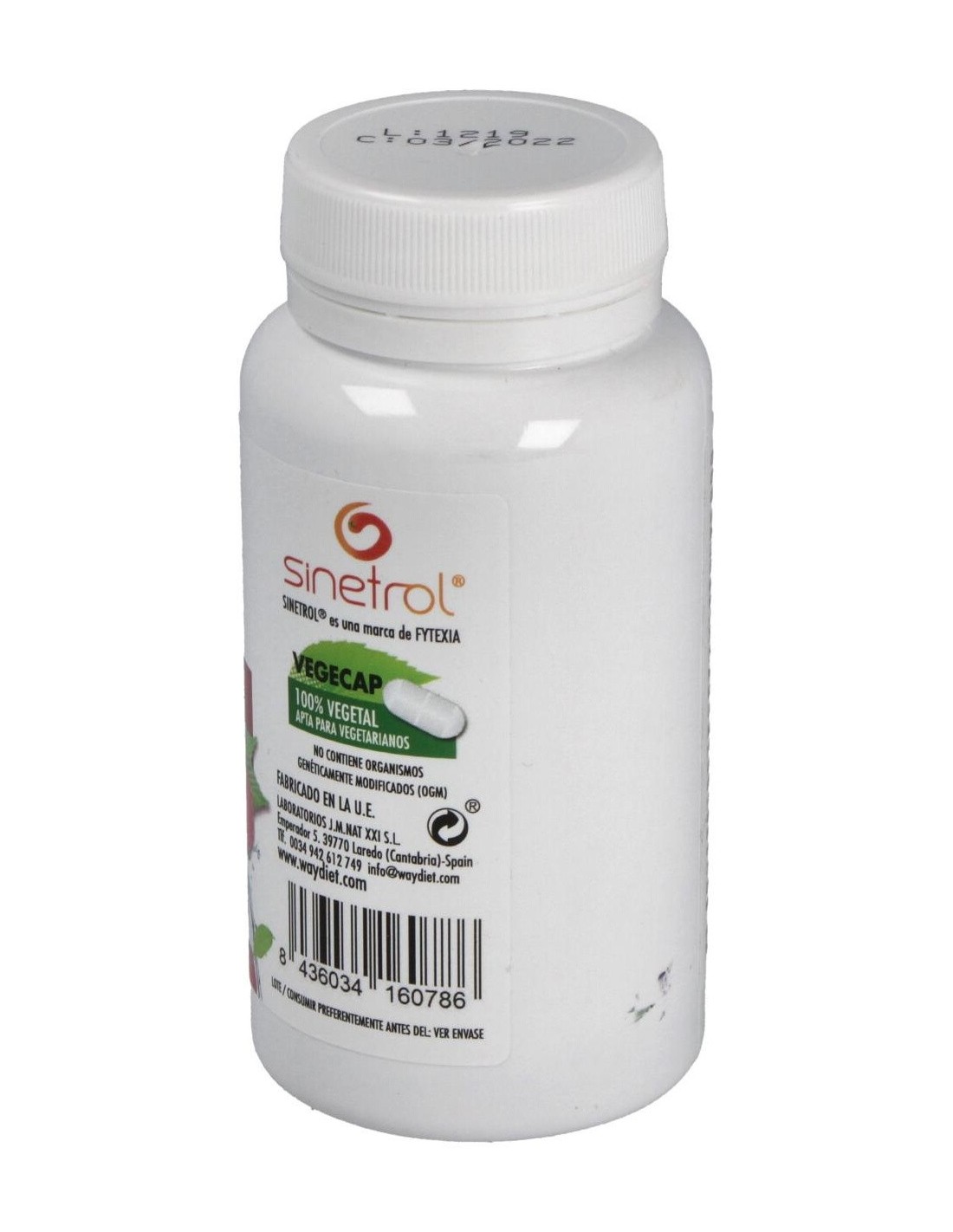 Sinetrol XPUR (Extractos de Naranja dulce (Citrus sinensisL.), Naranja sanguina (Citrus sinensis (L.) Osbeck), Pomelo (Citrus x paradisiMacfad. / Citrus grandis L. Osbeck), Guaraná (Paullinia cupana Kunth., Bonpl. et Kunth) y maltodextrina) 900 mg, Agente de carga (Celulosa microcristalina), Cetonas de frambuesa 200 mg, Antiaglomerante (Estearato de magnesio) y Picolinato de cromo 0,814 mg (100 µg de Cromo).Cápsula vegetal.