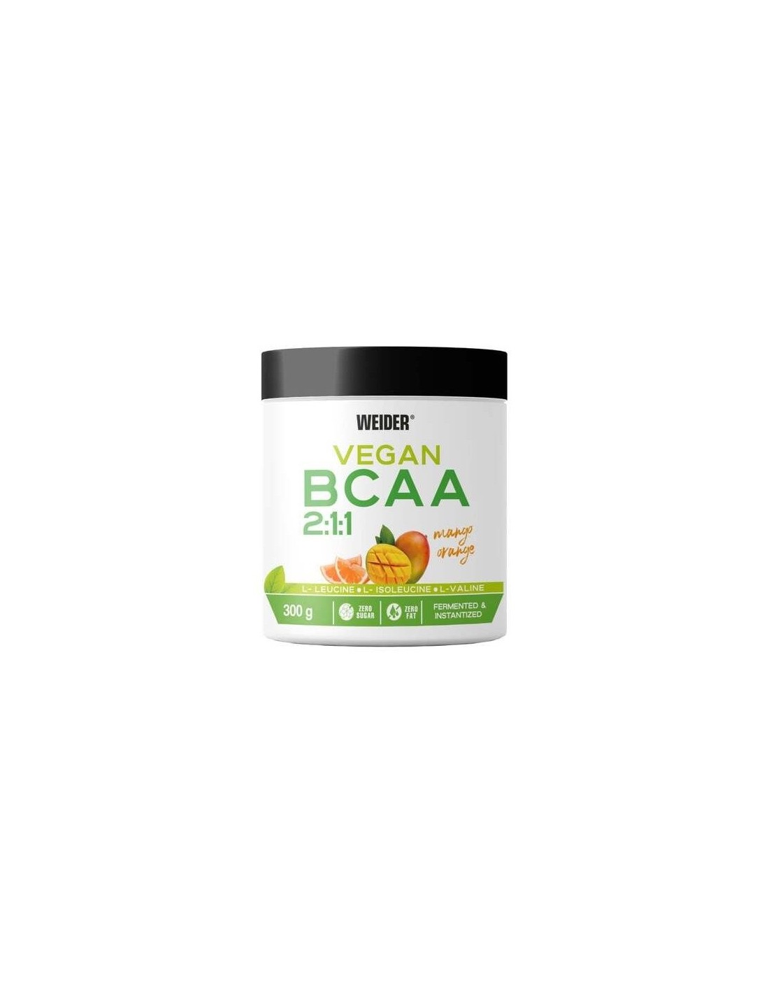 Aminoácidos ramificados aptos para veganos. WEIDER VEGAN BCAA mango-naranja 300gr.