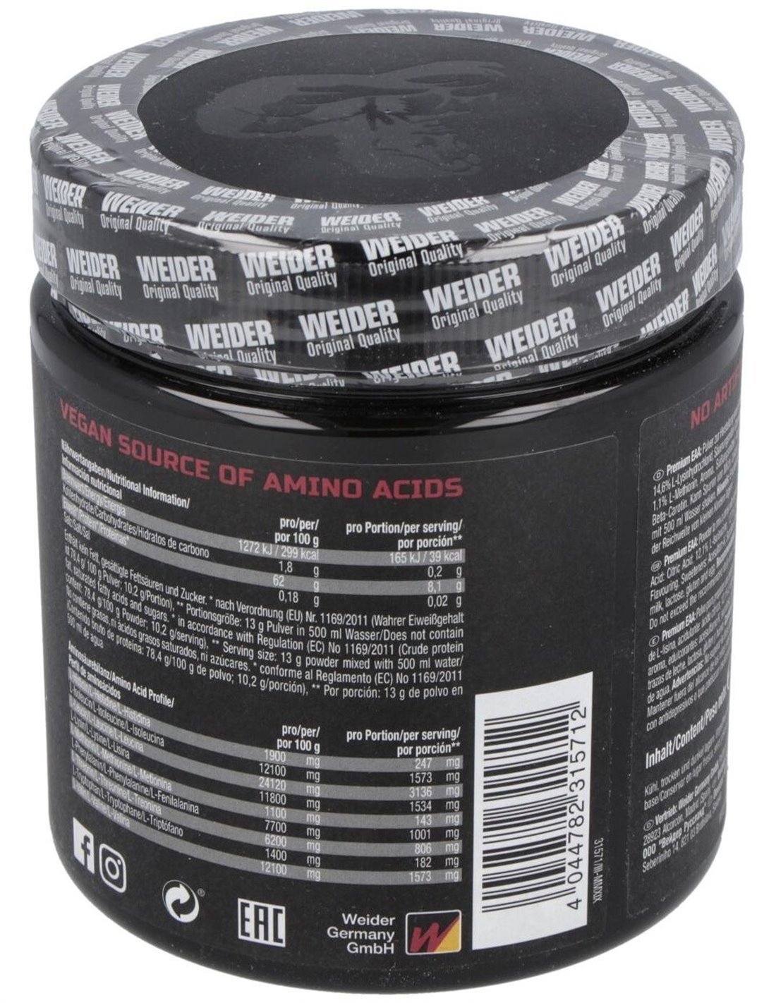 WEIDERWEIDER PREMIUM EAA zero tropical 325gr. de WEIDER