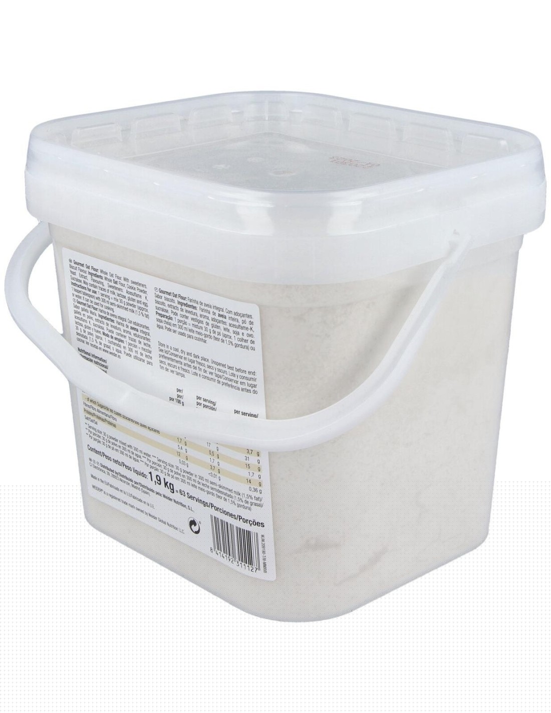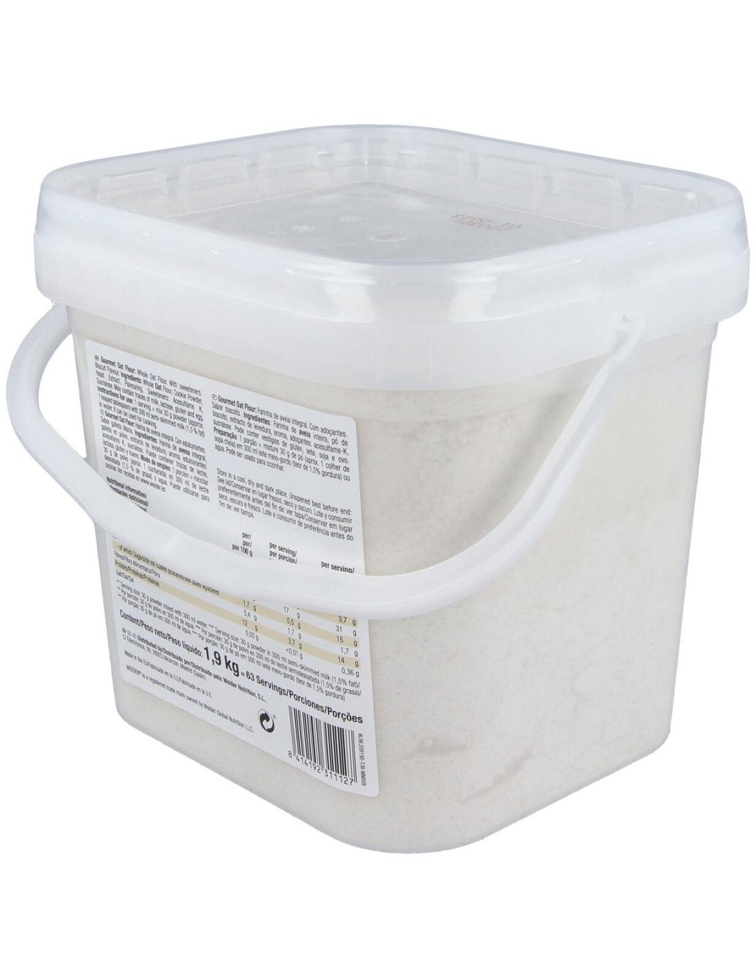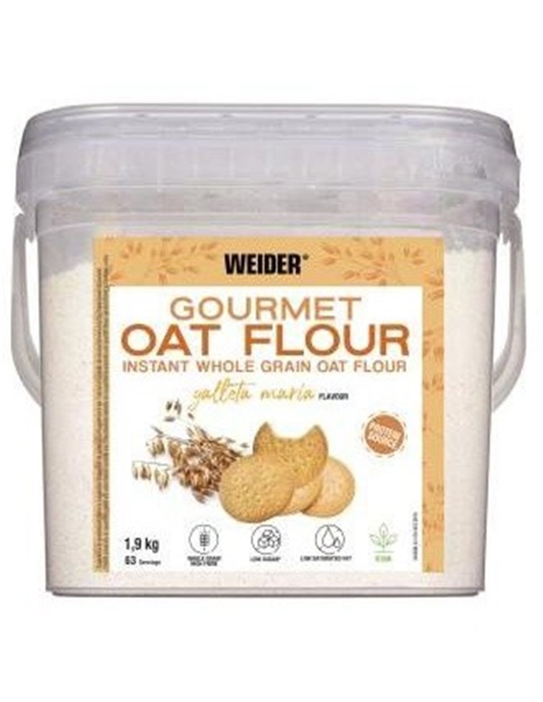 Harina de avena instantánea de calidad superior, obtenida de granos enteros de avena no OMG y sin azúcares añadidos. WEIDER HARINA DE AVENA galleta maria 1,9kg.