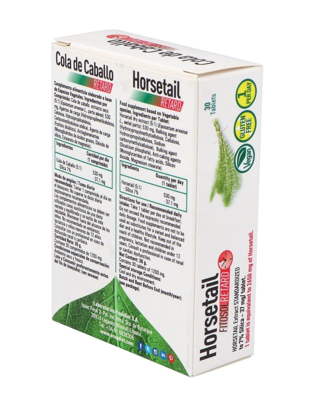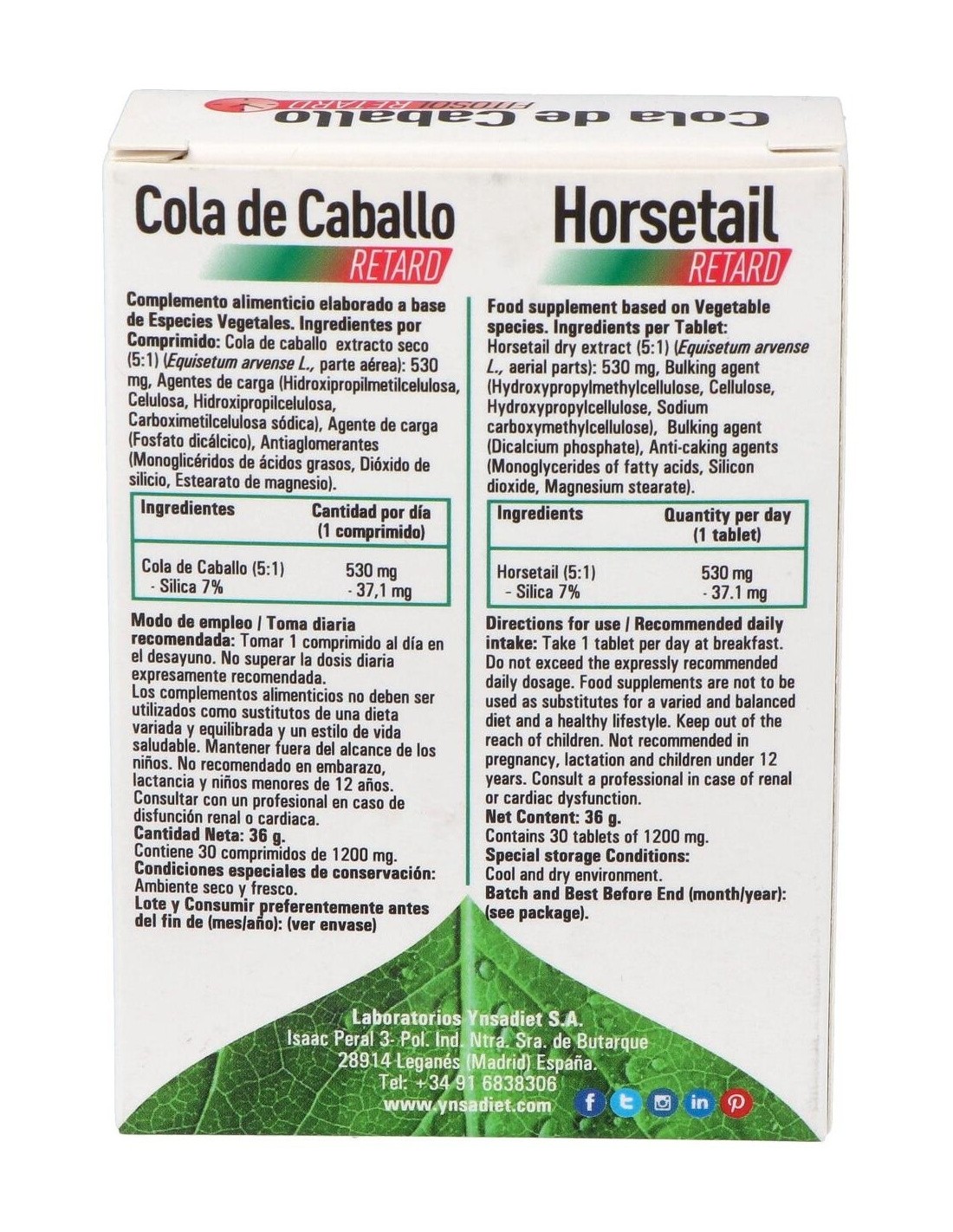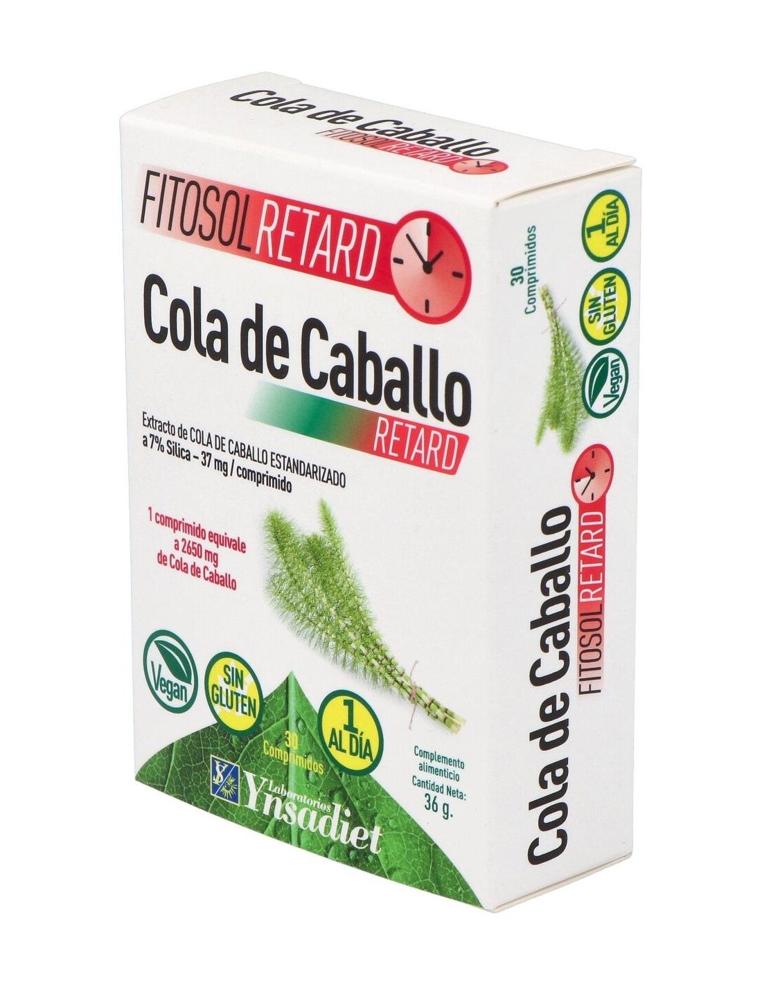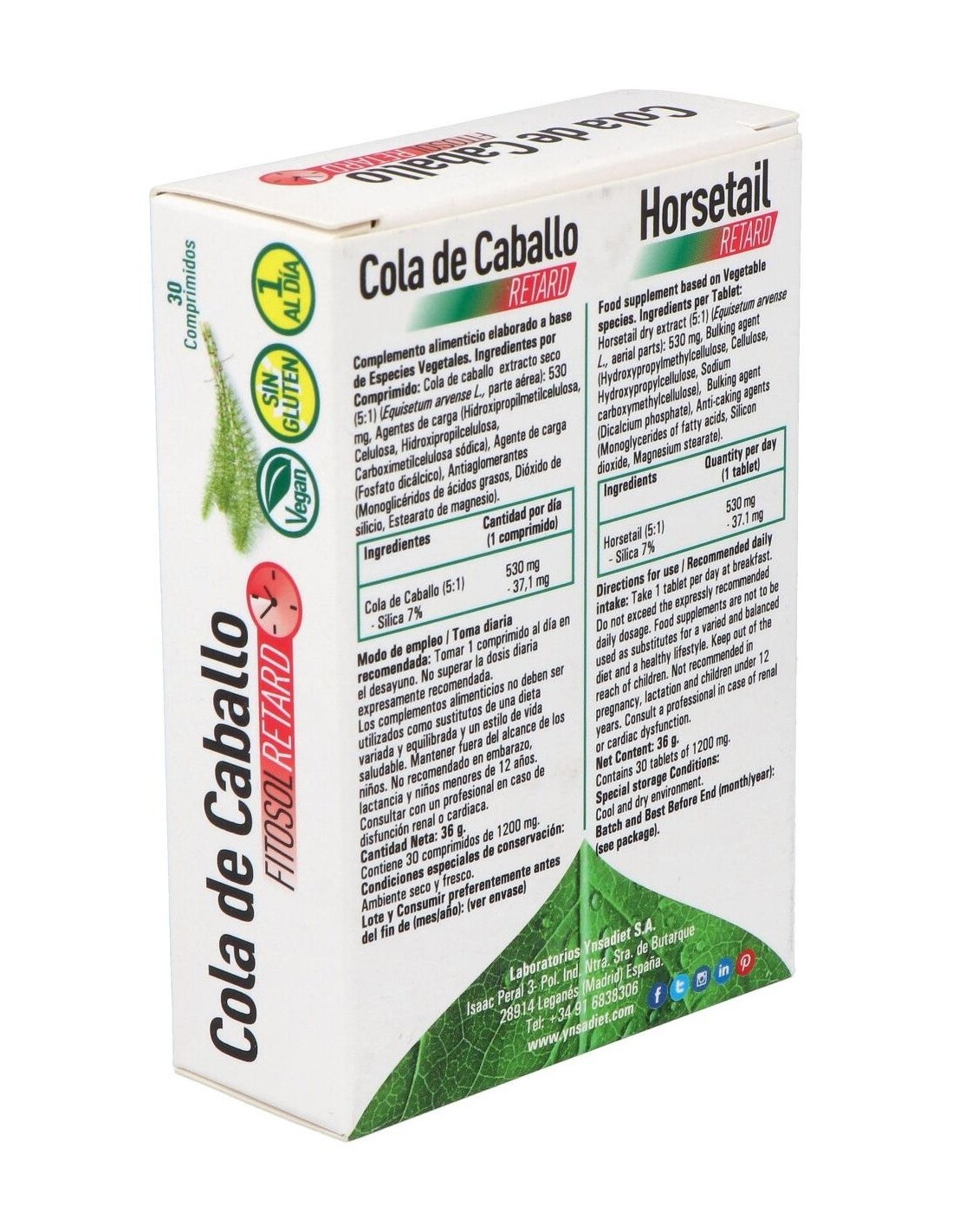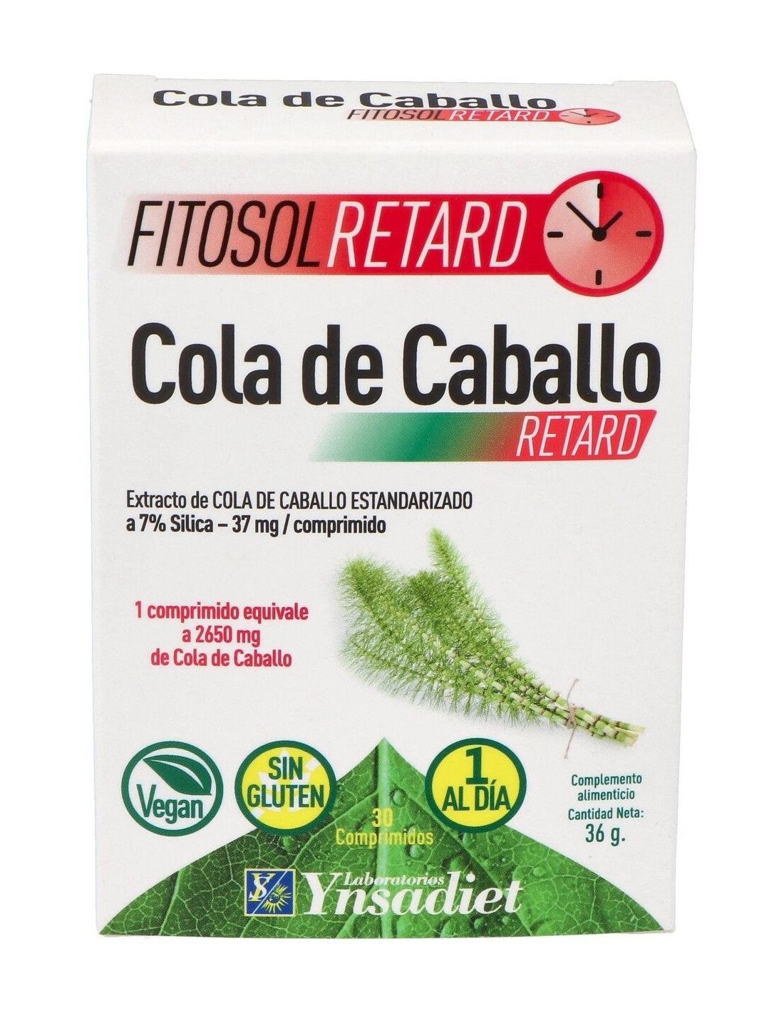 Este producto es de la marca Ynsadiet. Está indicado para beneficiar al cuerpo cuando sufre de retención de líquidos. El ingrediente principal de este complemento es la cola de caballo. Produce un efecto diurético, esto es, que los riñones se benefician de una mayor liberación de sodio en la orina. Las articulaciones también son favorecidas por la sílica que contiene, ya que esta previene la aparición de afecciones en ellas.