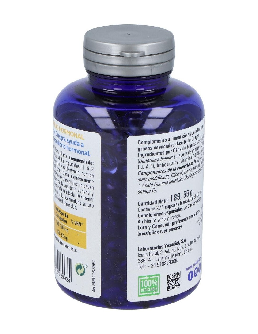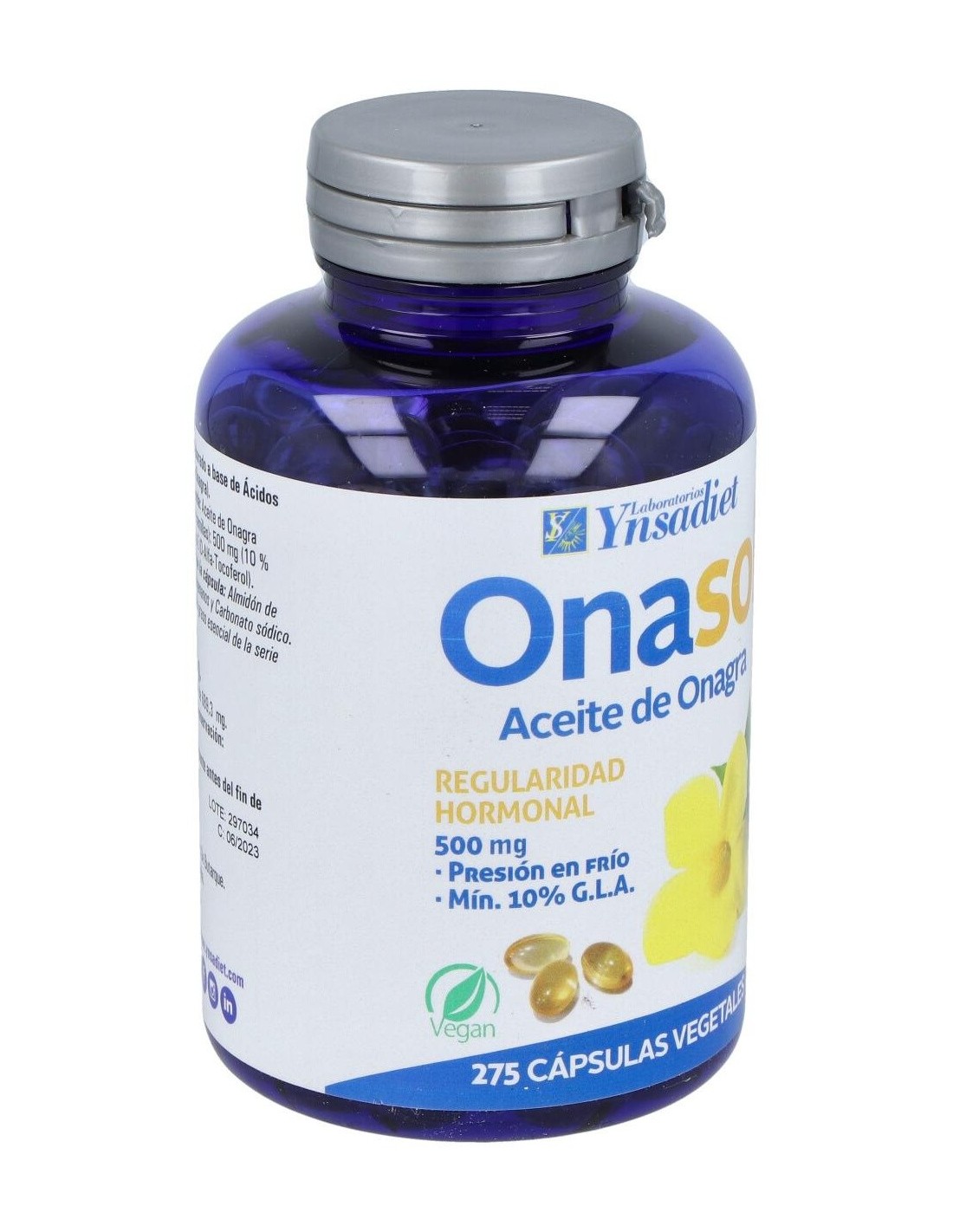 Ynsadiet onagra vegetal 275 perlas es un complemento alimenticio rico en Omega-6, que es un ácido graso esencial que favorece la síntesis de prostaglandinas. Las prostaglandinas son sustancias que ayudan a regular el ciclo menstrual de las mujeres. Además, ayudan a normalizar los niveles de presión arterial.