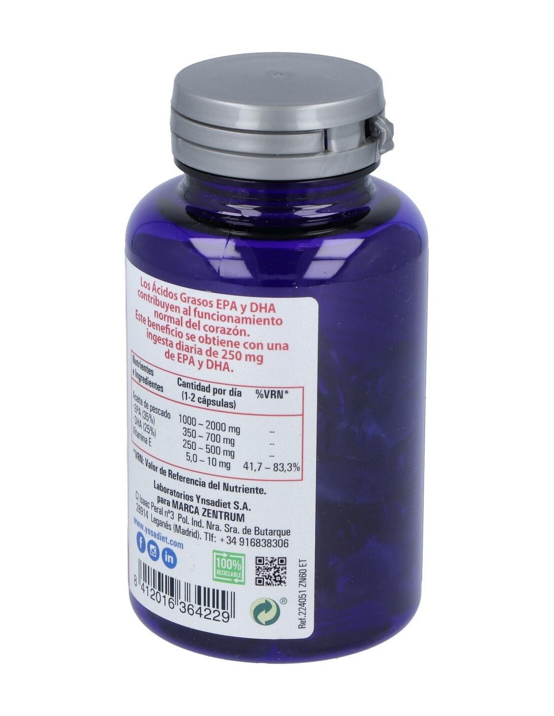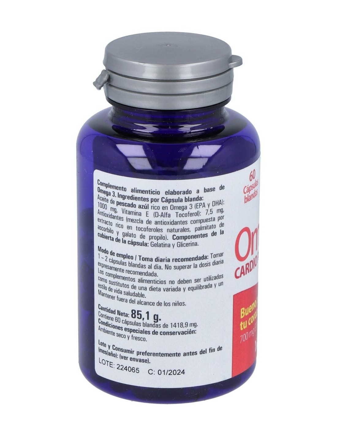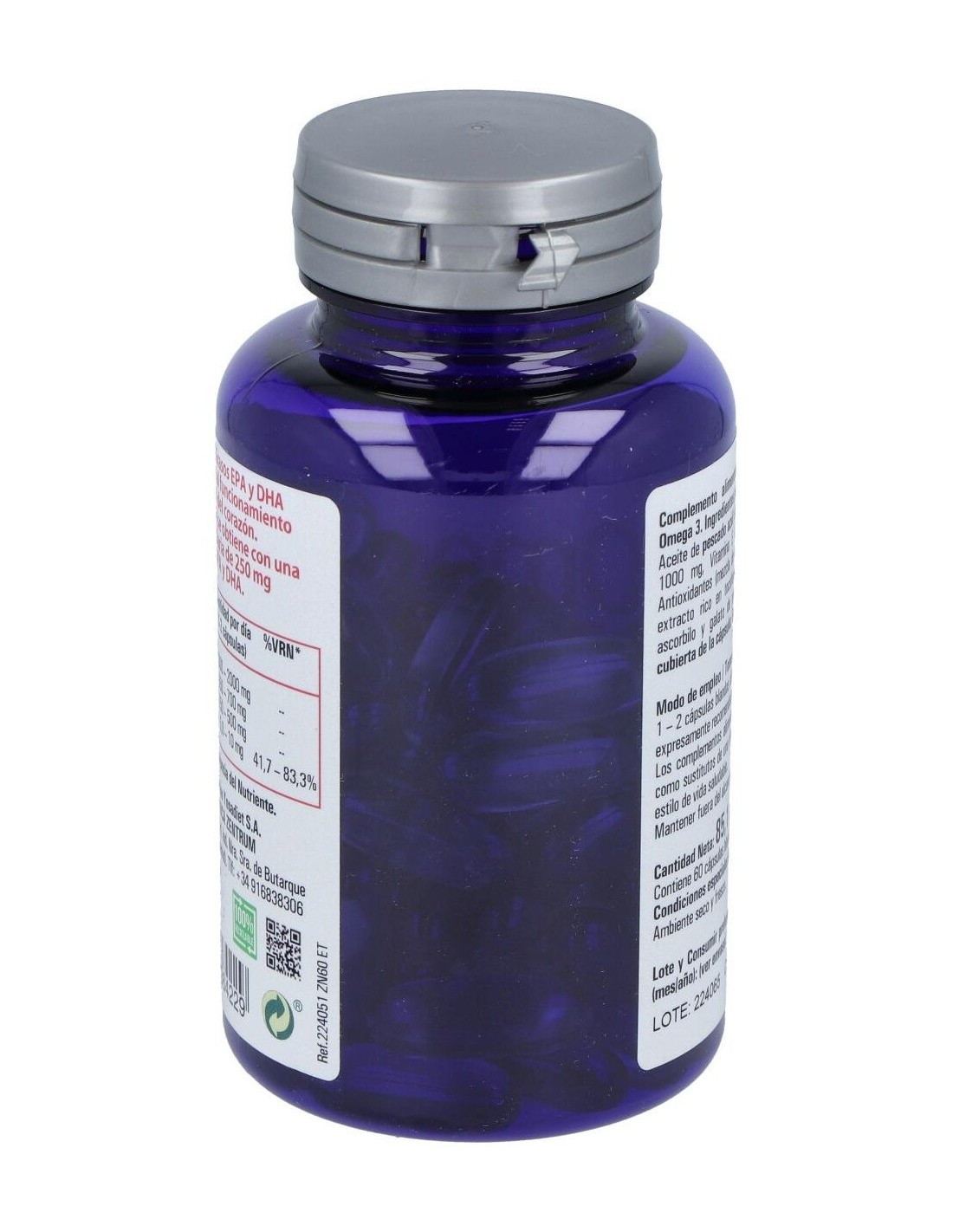 Complemento alimenticio formulado a base de aceite de pescado rico en ácidos grasos omega 3. Producto rico en EPA y DHA. Contribuye a la normal función cardiovascular. El omega 3 tiene propiedades beneficiosas para el sistema ocular y cerebral. Indicado para adultos.