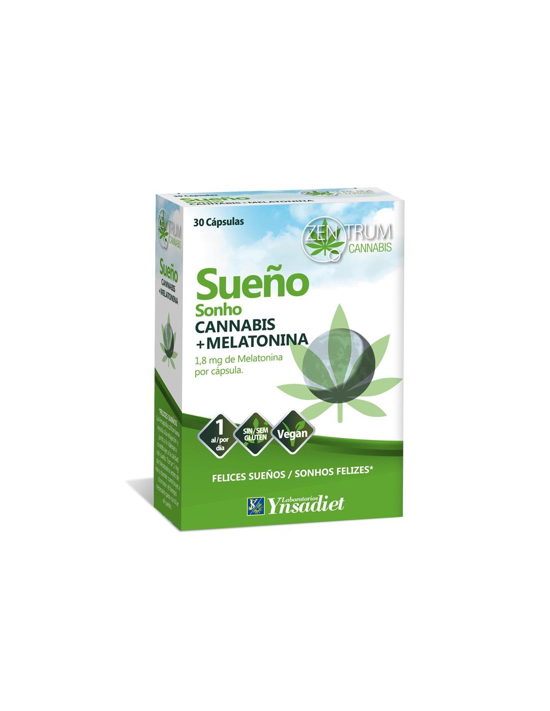Almidón de maíz (Almidón de maíz, Antiaglomerantes [Silicato de magnesio, Sales magnésicas de ácidos grasos, Dióxido de silicio]), Amapola extracto seco (Eschscholzia californica. Cham., hierba), Componentes de la cobertura de la cápsula (Hidroxipropilmetilcelulosa), Pasiflora extracto seco (Passiflora incarnata L., partes aéreas), Valeriana extracto seco (Valeriana officinalis L., raíz), Semillas de Cáñamo en polvo (32% de proteína) (Cannabis sativa, semilla), GABA (Ácido Gamma-Amino butírico), Agente de carga (Celulosa), Melatonina en polvo.\ \ Por 1 cápsula:\ Amapola extracto seco 100 mg\ Pasiflora extracto seco 75 mg\ Valeriana extracto seco 53 mg\ Semillas de cáñamo 50 mg\ GABA 30 mg\ Melatonina 1,8 mg\ \ *Puede contener trazas de soja, mostaza y altramuces.