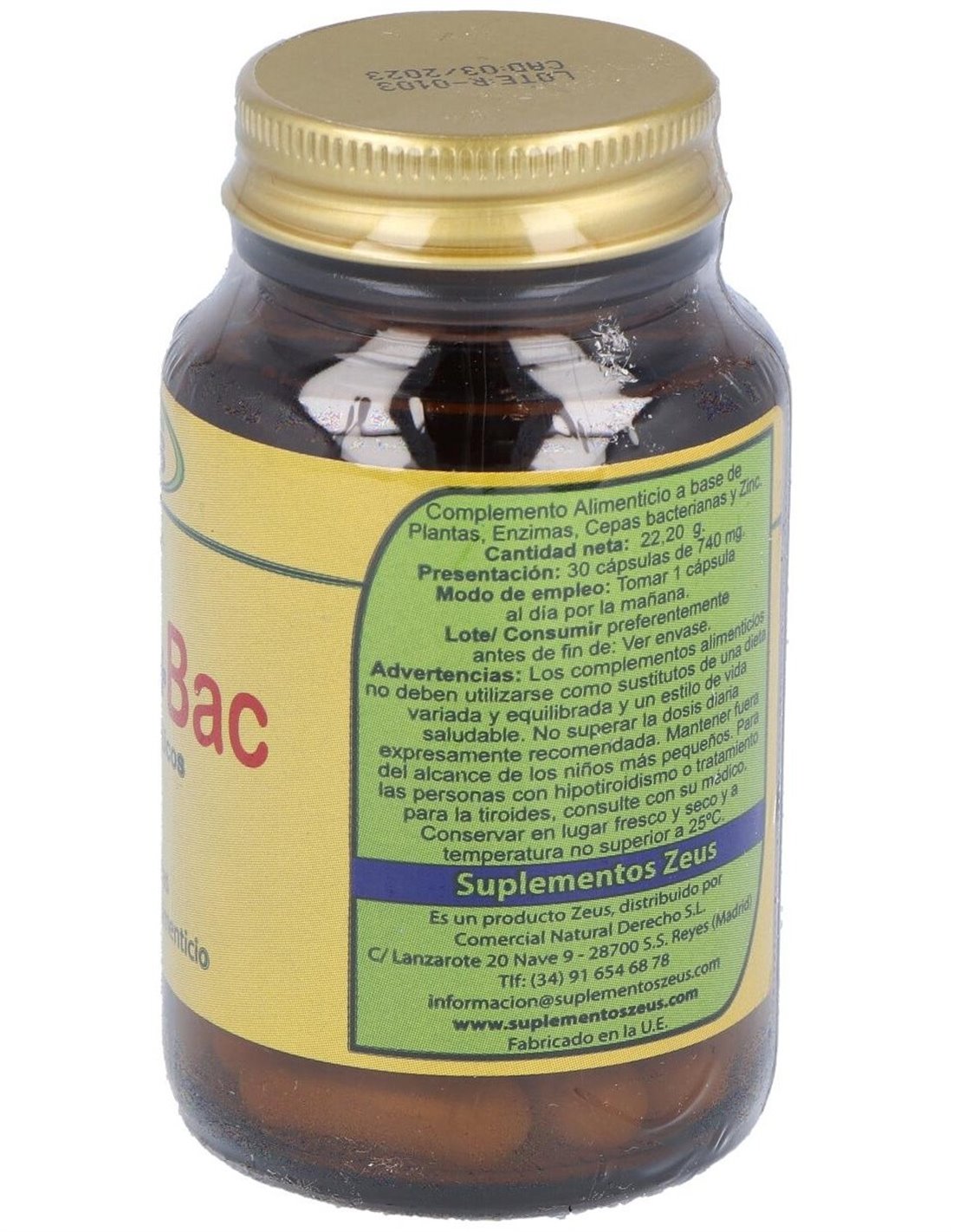 Agente de carga (Celulosa), Niacina (Nicotinamida) 8 mg. (50%VRN), Antiaglomerantes (Estearato de magnesio y Dióxido de silicio), Ácido pantoténico (D-Pantotenato cálcico) 3 mg.(50%VRN), Vitamina B6 (Clorhidrato de piridoxina) 0,7 mg.(50%VRN), Riboflavina (Vitamina B2) 0,7 mg.(50%VRN), Tiamina (Clorhidrato de tiamina) 0,55 mg. (50%VRN), Ácido fólico (Ácido pteroilmonoglutámico) 100 µg. (50%VRN), Biotina (D-Biotina) 25 µg. (50%VRN) y Vitamina B12 (Cianocobalamina) 1,25 µg (50%VRN). Cápsula vegetal (Hidroxipropilmetilcelulosa). Por 1 cápsula: L-Fenilalanina .......................................................... 200 mg. L-Citrulina ................................................................100 mg. Careless® (Mango en polvo) ......................................100 mg. Extracto seco de Rhodiola ..........................................100 mg. L-Arginina Base ........................................................100 mg. Coenzima Q-10 Kaneka ® ..........................................50 mg