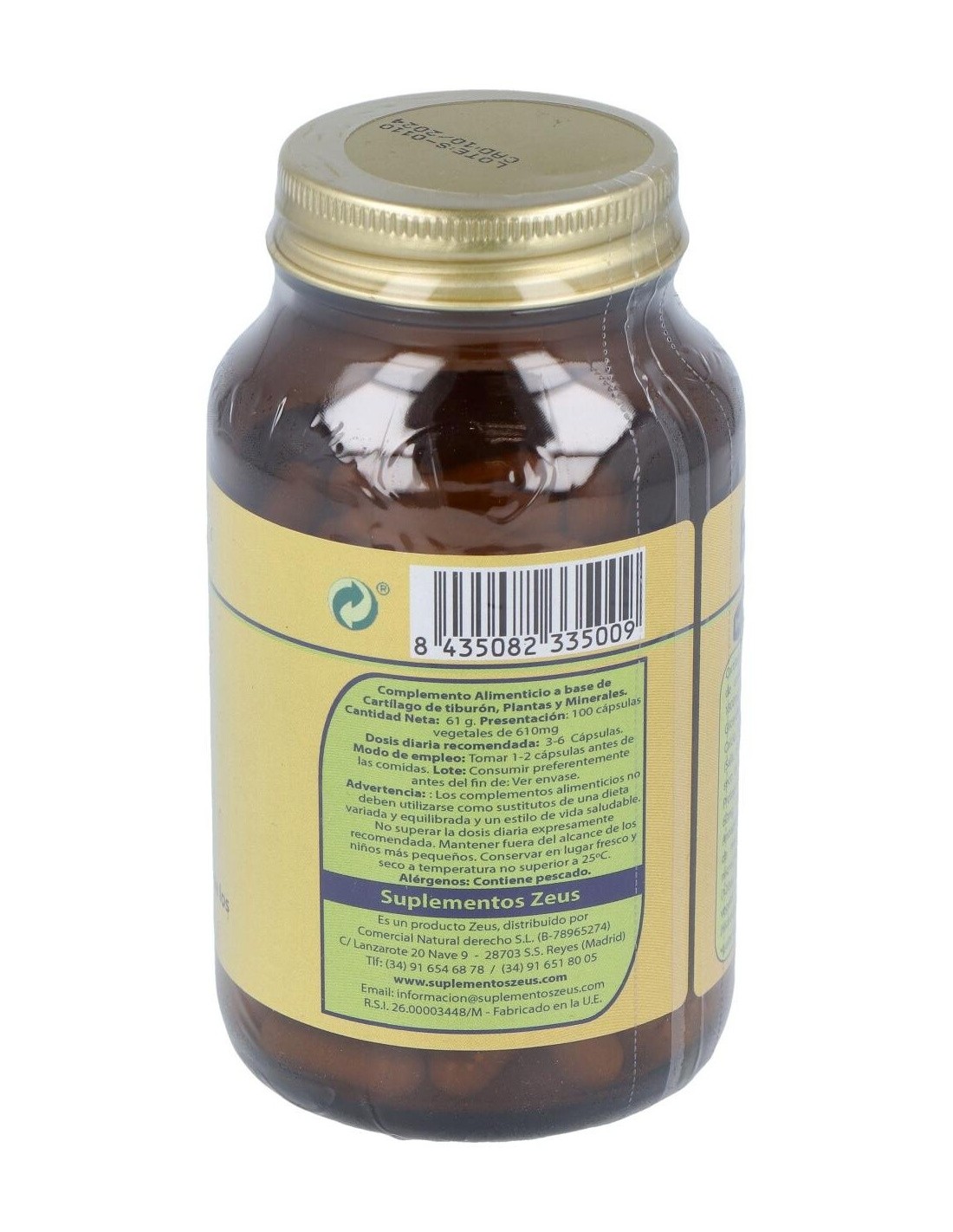Cartílago 300 mg, Sauce 50 mg, Fumaria 30 mg, Glicerofosfato cálcico 100 mg, Selenio 10 mg, Silicio 5 mg, Magnesio 5 mg, Cápsula vegetal.