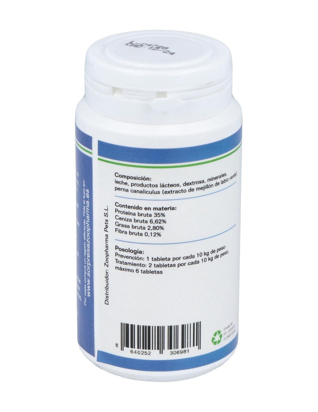 Perna Canaliculus ( Mejillón del labio verde), gelatina, algas marinas, levadura de cerveza, metionina, vitamina E y Selenio. Rico en aminoácidos, glicosaminoglicanos, minerales y vitaminas y ácidos grasos esenciales como el Omega-3 EPA y DHA.